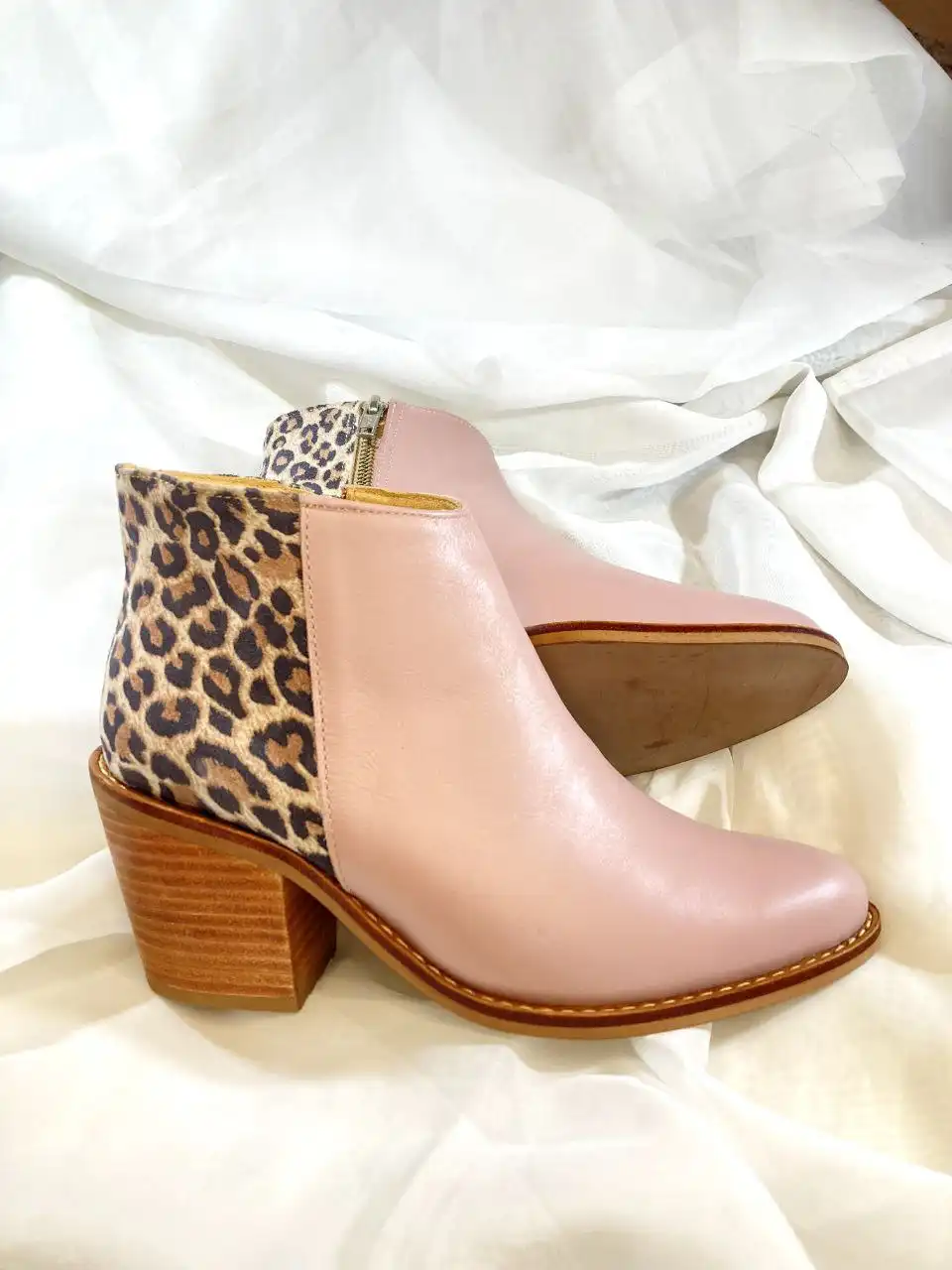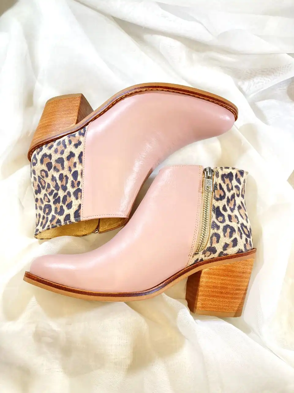 ¡Añade un toque salvaje a tu estilo con nuestro zapato de cuero rosa con animal print! Confeccionado con cuero 100% natural y calidad excepcional.